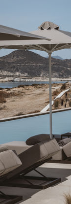 The hotel is named after the famous seaside white rock formations that are part of the property, and overlooks the world-famous sunset and shares the same coastline and stunning rock formations as the famous Sarakiniko beach.